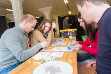 Guests are welcomed to the Funtivities venue with refreshments and their first challenge of finding their teammates. Each guest will get a piece of a puzzle and must find other members of his/her team by finding puzzle with same graphic design. A complete puzzle will reveal the team’s name.