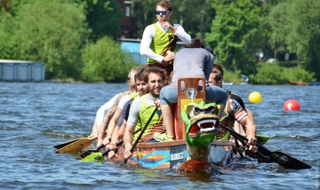 Dragon Boats have a lengthy history - first appearing more than 2000 years ago in China. The boat is 12.5 metres long, weighs 250 kg empty, and looks like an open canoe with a dragon’s head and tail at the front and the back respectively. The maximum amount of guests per boat is 20, and the minimum is 12. For smaller teams, we can provide mini Dragon Boats, which hold a maximum of 10 guests. The paddling rhythm is kept by the drummer at the front of the boat, and the steering is done by the helmsman at the back.